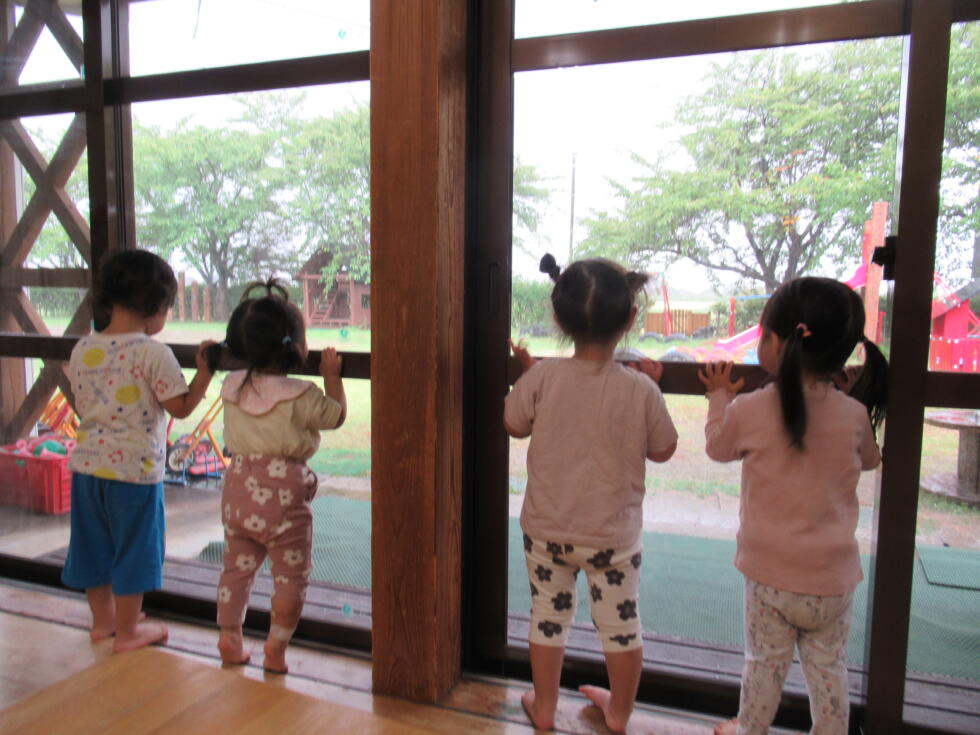 突然の雨の音に、一斉に窓のところへ!