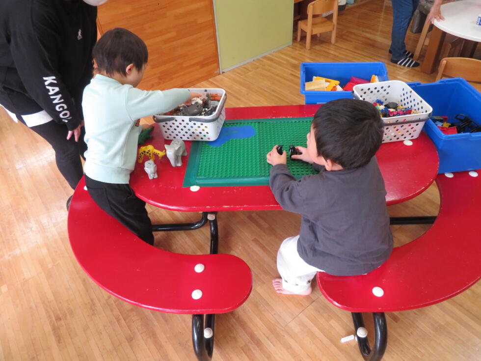 お部屋でじっくりあそんだり、おゆうぎしつで体を動かしたり、各コーナーで好きな遊びを見つけながら、楽しそうな子どもたちでした。