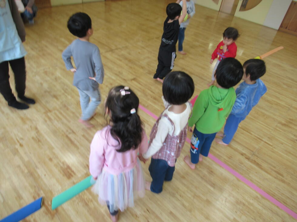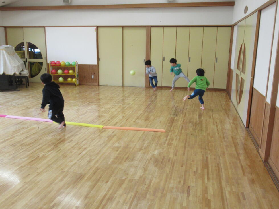 おゆうぎ室では、ドッチボールを楽しみました。